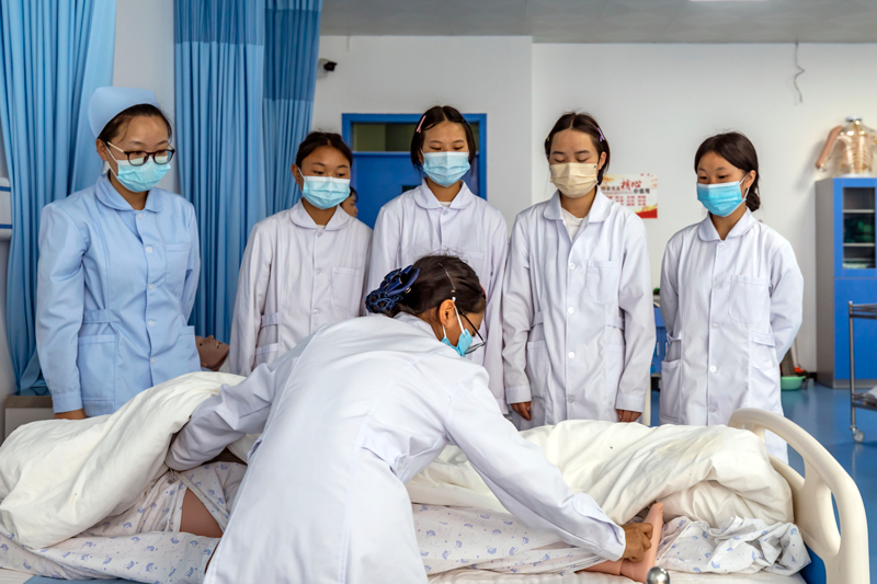 2022年4月27日,學生在貴州省黔西市中等職業學校進行中醫護理技能實訓。新華社發(范暉攝)
